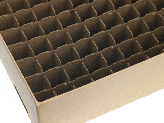 The base and lid styled box are wrapped in Kraft paper with a die-cut egg crate cell divider insert, that not only securely holds each vial but is a sustainable material that expresses CRYO’s commitment to the environment.