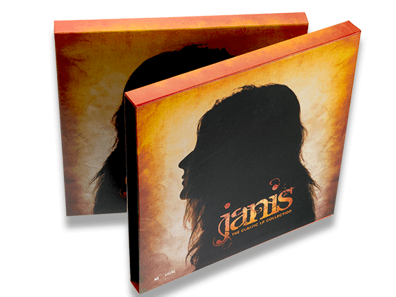 This custom slipcase commemorates the legacy of rock legend and counter-cultural icon Janis Joplin. This box released by Joplin’s record label Columbia Records and Legacy Recordings, divisions of Sony Music was made to contain a limited edition set of Janis’s most beloved albums, assembled in one collection for fans and fanatics.