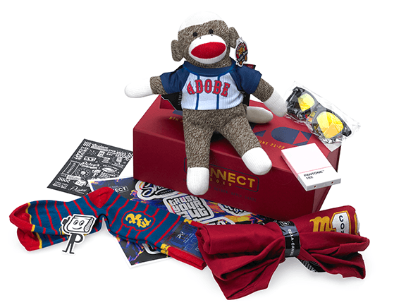Inside the box revealed so many great surprises including an Adobe sock puppet, A Pantone business card holder, sunglasses, socks, a t-shirt and so much more. Who wouldn't have been ecstatic to get this beautiful box of goodies.