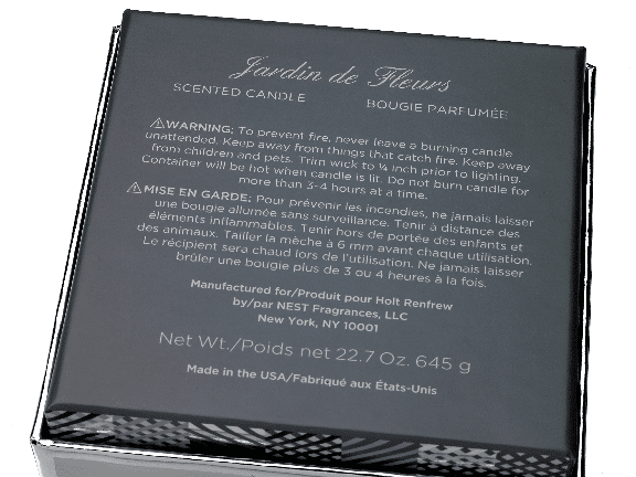 Canadian luxury retailer Holt Renfrew partnered with NEST Fragrances, Elton John, and his husband David Furnish to create exclusive scented candles to raise money for the Elton John AIDS Foundation. The three-wick oversize candles came in two varieties; L' Orangerie, a citrus fragrance, and Jardin de Fleurs, a floral blend.