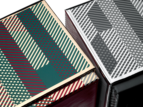 The shimmering metallic appearance of the boxes makes for an unforgettable luxury candle packaging experience.